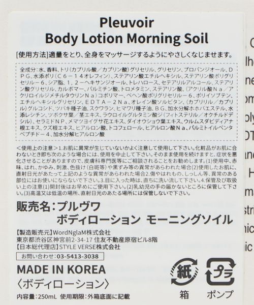 <Pleuvoir>Morning Soil Body Lotion/ボディローション