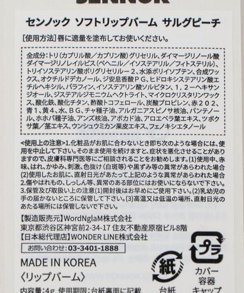 品名:NW SENNOK LIPBALM SG PC 品番:92984000039
