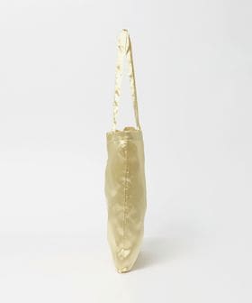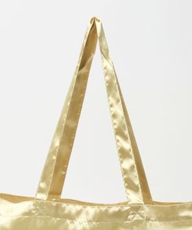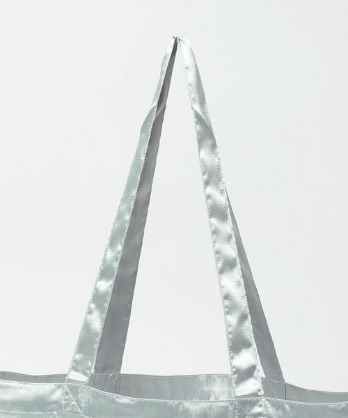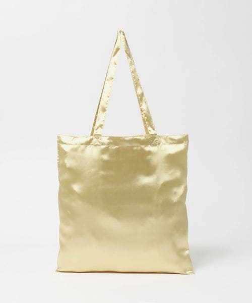 煌びやかなサテン生地を使用し、フロントにシグネチャーロゴグラフィックをプリントしたトートバッグ。