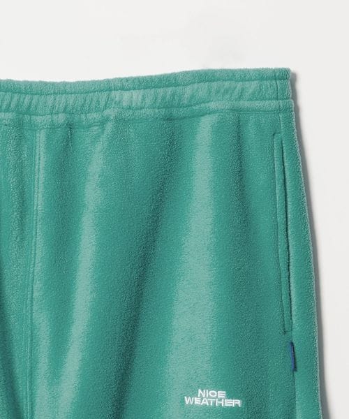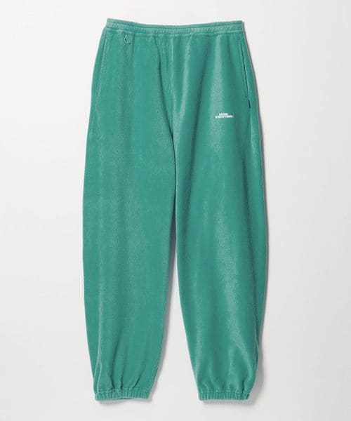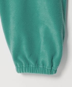 フリース素材を使用して、全体的に適度なゆとりを持たせたリラックス感のあるシルエットのパンツ。