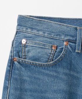 足の付け根部分のアタリやヒゲ、腰回りのブラストなど細部にこだわりよりリアルなユーズド感を表現しています。