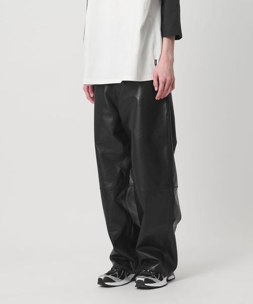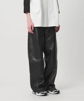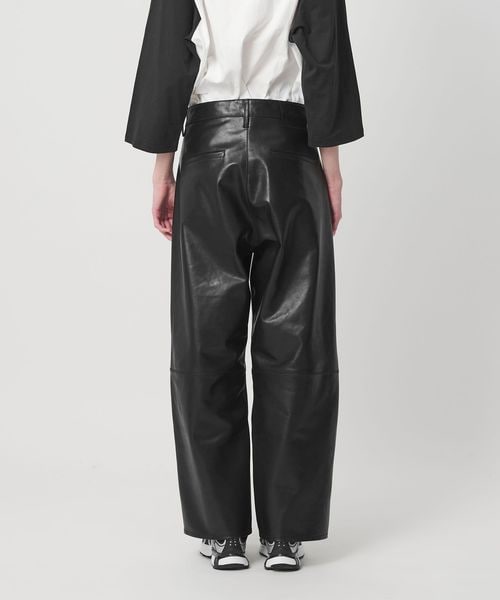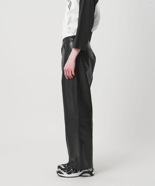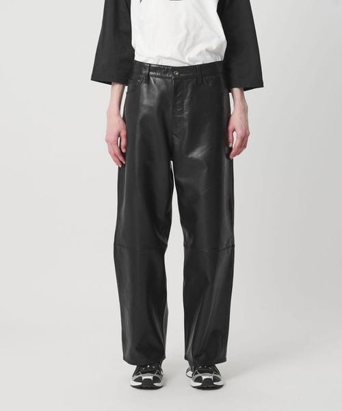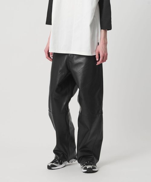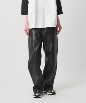 重厚感のあるレザーを使用した、太めのテーパードシルエットが特徴のレザーパンツ。