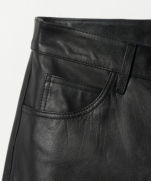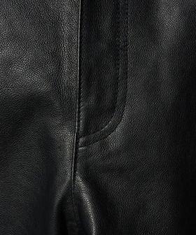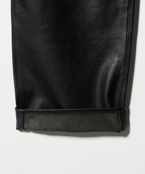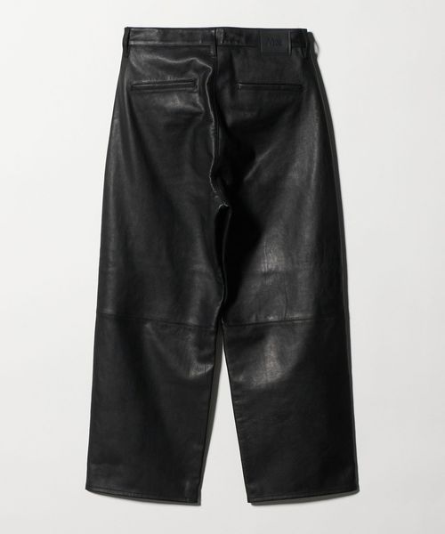 重厚感のあるレザーを使用した、太めのテーパードシルエットが特徴のレザーパンツ。