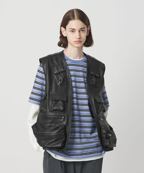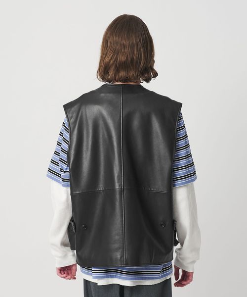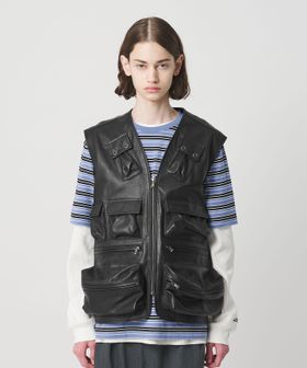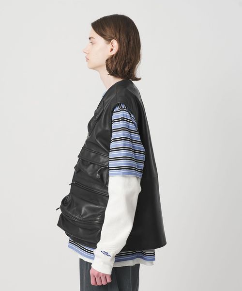 重厚感のあるレザーを贅沢に使用した、オーバーサイズのカメラベスト。