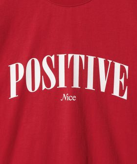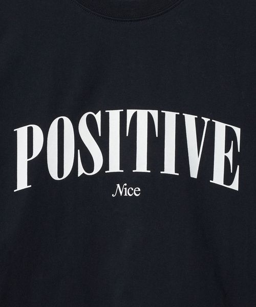 フロントの“POSITIVE”ロゴグラフィックが目を引くロングスリーブTシャツ。