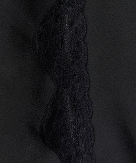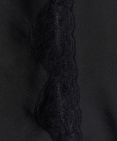 すっきりとしたシルエットに、胸元のレースがほどよい華やかさを添え、上品で落ち着いた印象に仕上げています。