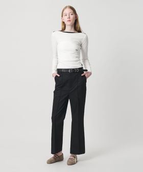 デコルテをきれいに見せてくれるボートネックデザインで、顔まわりに抜け感をプラス。
