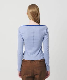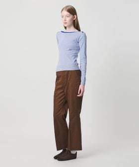 襟元のフライスは身頃と配色にしており、さりげないアクセントとしてコーディネートを引きしめます。