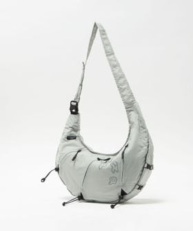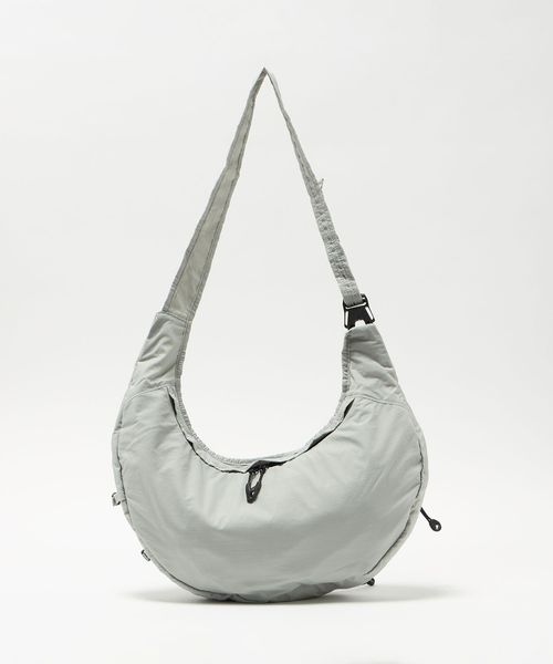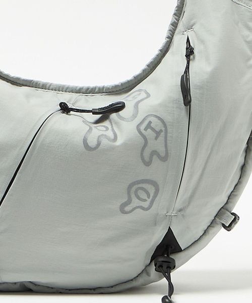体にフィットする丸みのあるフォルムが特徴的な、ジッパー仕様のスリングバッグ。