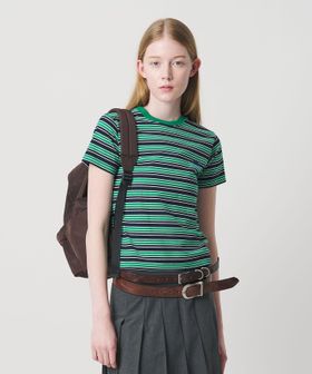 カラフルな配色が目を引くマルチボーダー柄のショートスリーブTシャツ。