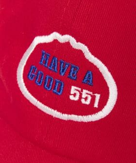 RED:<NICE WEATHER>のキャッチフレーズを「HAVE A GOOD 551」に文字り、形状を「肉まん」にしたグラフィック。
