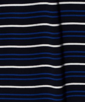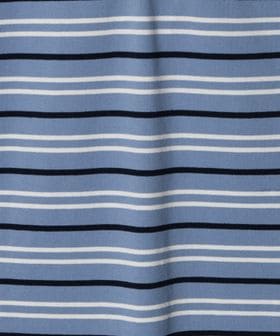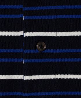 印象的なボーダー柄が目を引く、オーバーサイズシルエットのショートスリーブポロシャツ。