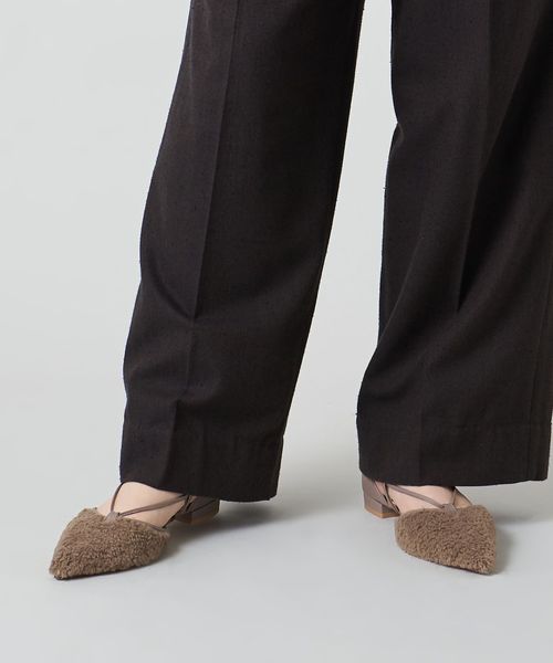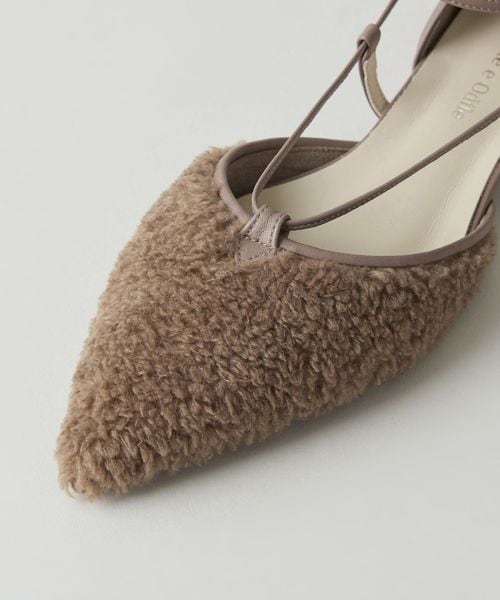 ブラックはシーズンレスで足元のアクセントになるグリッター、ダークグリーンは起毛素材、その他1はボア素材を使用。かかとにはそれぞれ同色のスムースレザーを合わせています。