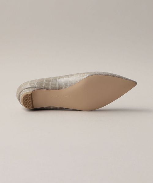 全体を同素材で仕上げローヒールでも上品な印象に。ブラックは定番として持っておきたい一足。型押しはマニッシュな雰囲気で、シーズン問わずお楽しみいただけるカラーです。
