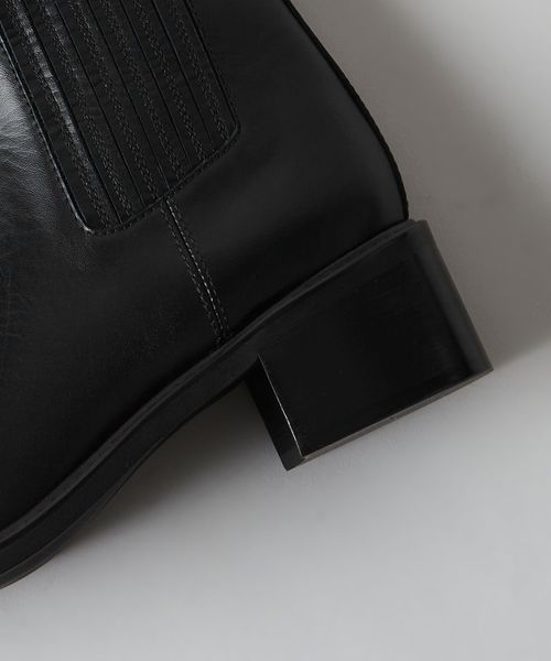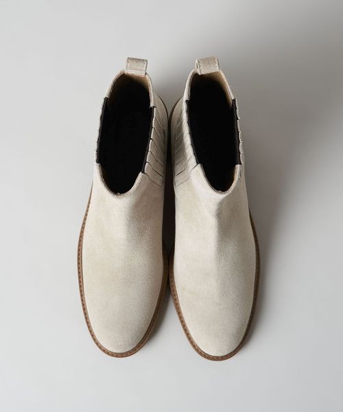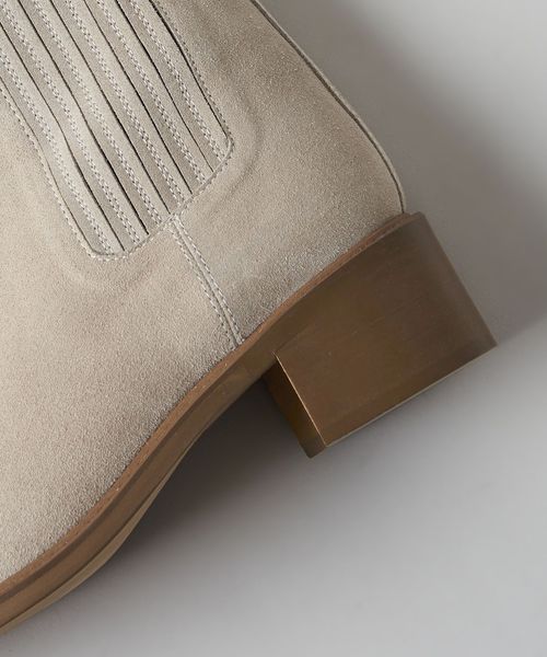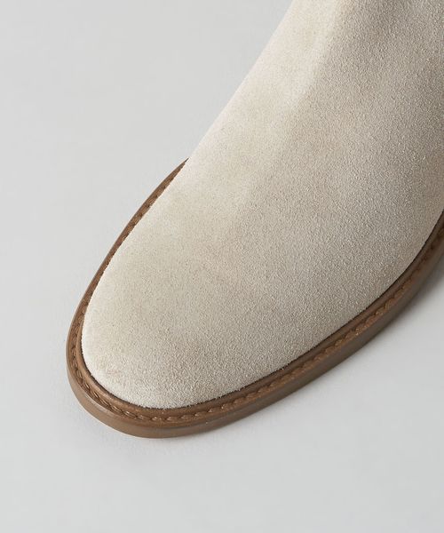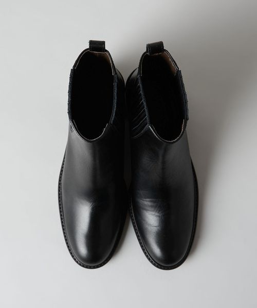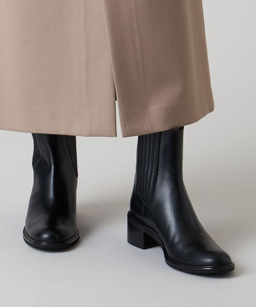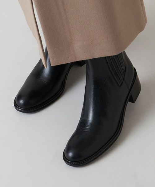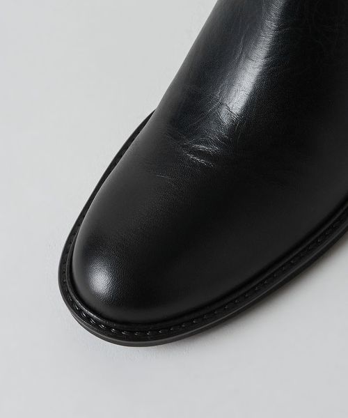 カジュアルになりがちなサイドゴアタイプも、トゥ先が伸びたラウンドトゥ木型により大人っぽさとマニッシュさを演出。