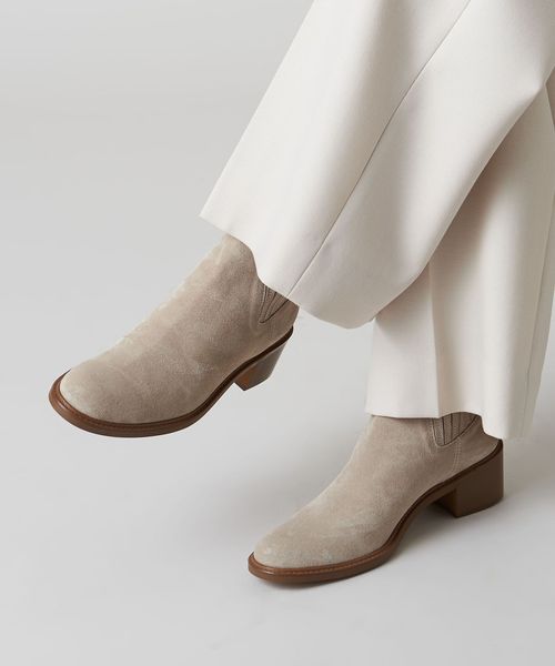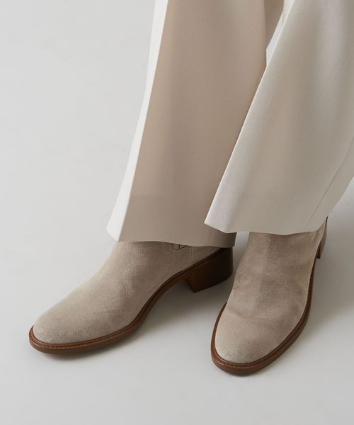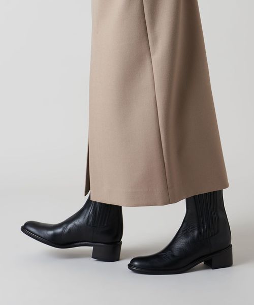 トゥ先が長めのため、ワイドパンツはもちろん、短めから長めまでさまざまな丈感のスカートともバランスが取りやすいショートブーツです。