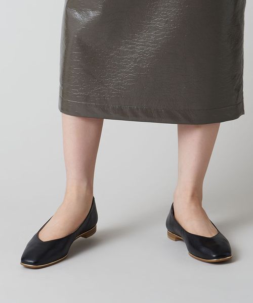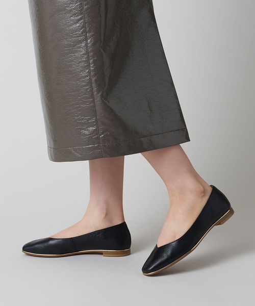 足になじむソフトな履き心地がクセになる一足はアッパーのVカットや底周りに施されたラインなどさりげないデザインが魅力的。
