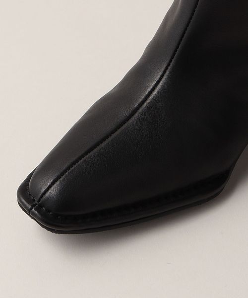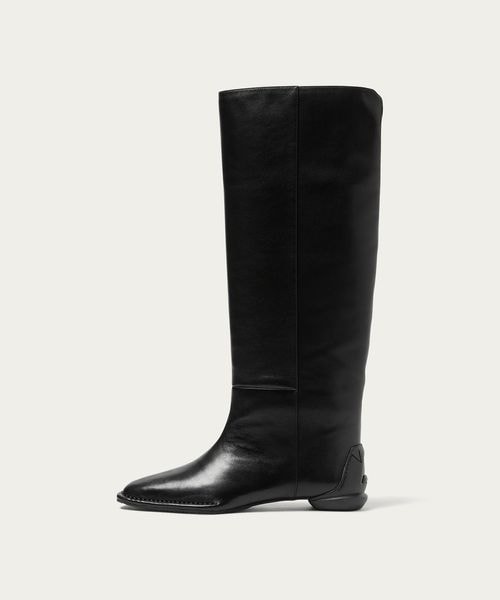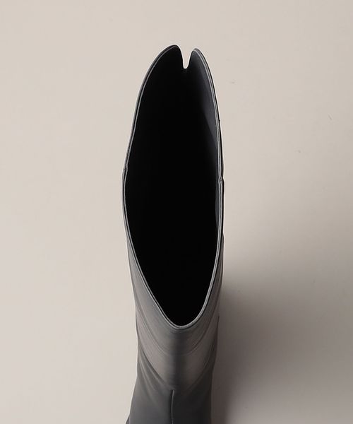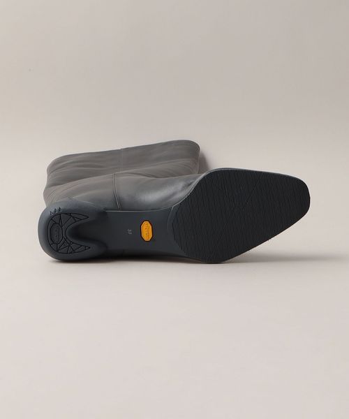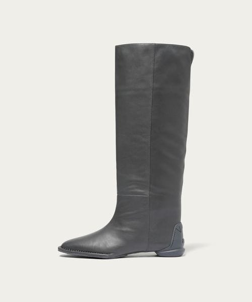 ストレートシルエットのシンプルなレザーニーハイブーツ。