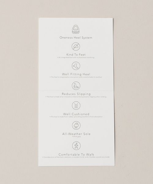 ブランドのアイコンであるONENESS HEEL SYSTEMは、かかとを包むように柔らかい”ラバー素材”で製作。