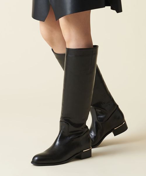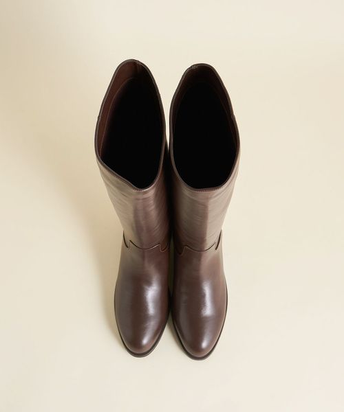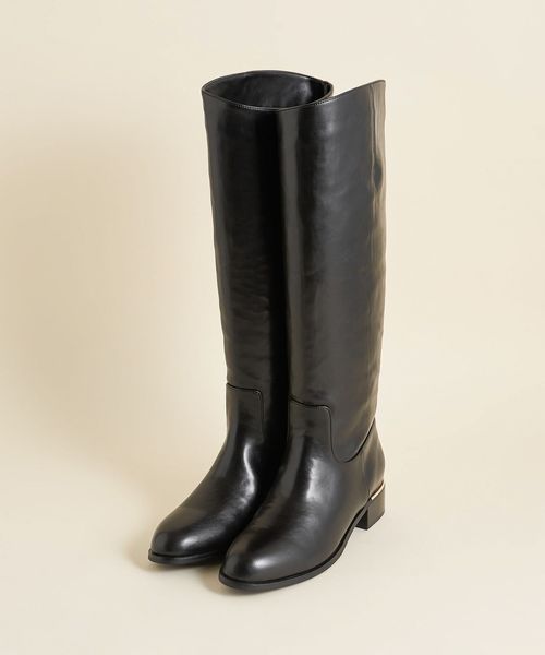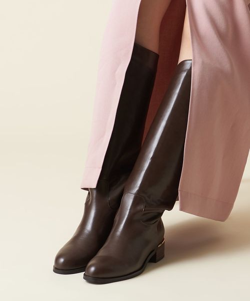 ファスナー無しの仕様でストレートラインのロングブーツ。