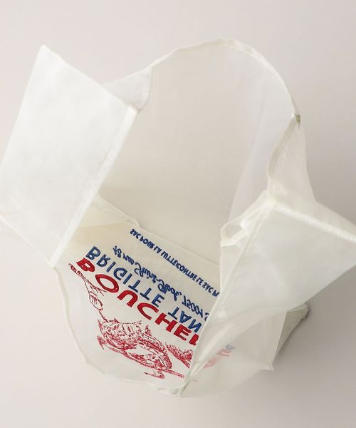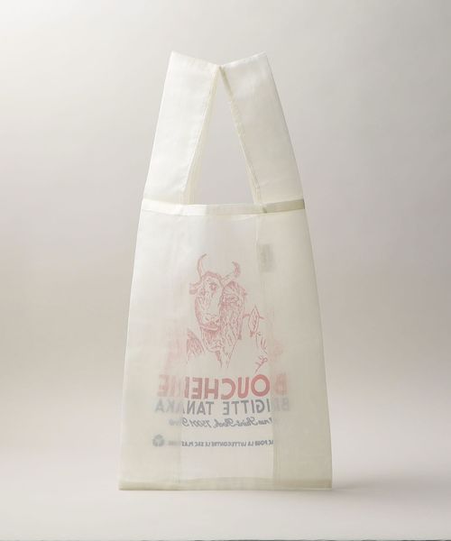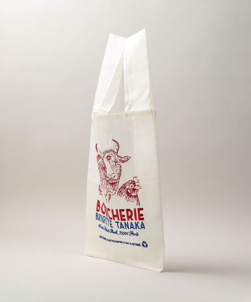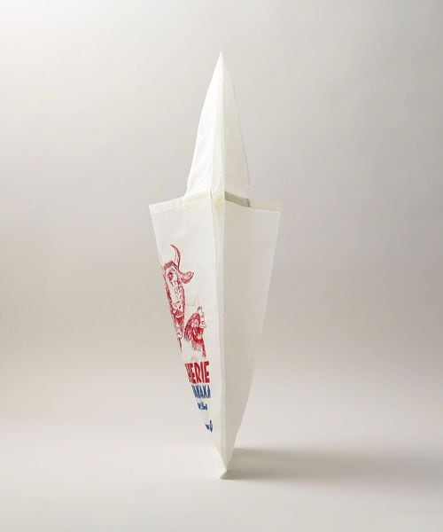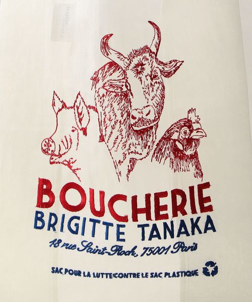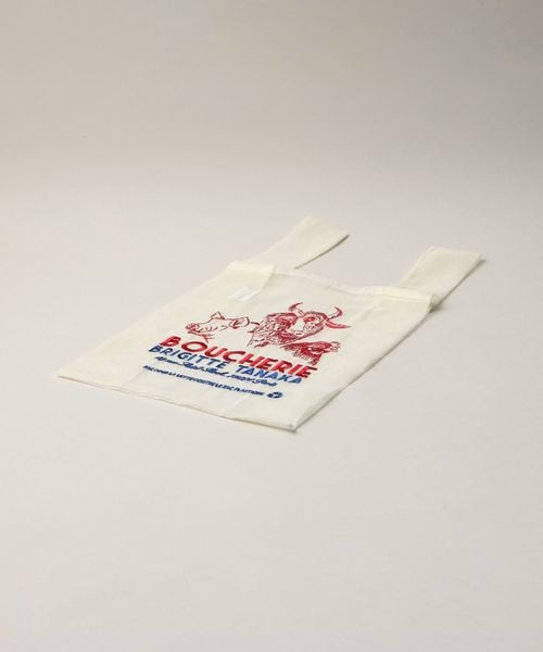 エコバッグやサブバッグとして活躍するアイテム。お肉屋さんをイメージした刺繍がコーディネートにアクセントをプラスしてくれます。