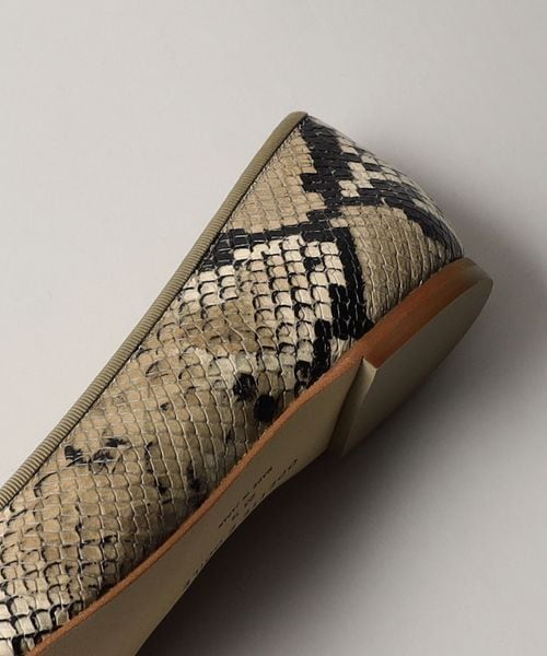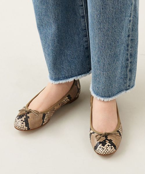 落ち着いた色味のパイソン柄はコーディネートに馴染みつつも足元にアクセントをプラスしてくれます。