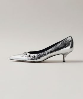 シンプルなパンプスながらもスタッズがモードな雰囲気を漂わせ、辛口なデザインパンプスに仕上がりました。