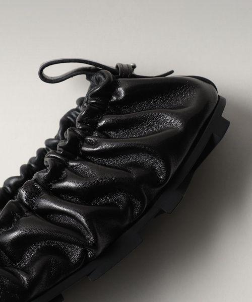 たっぷり入ったギャザーがキュートなフラットシューズ