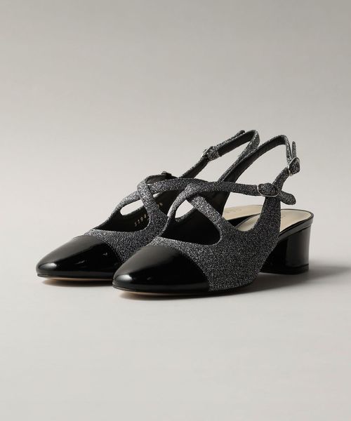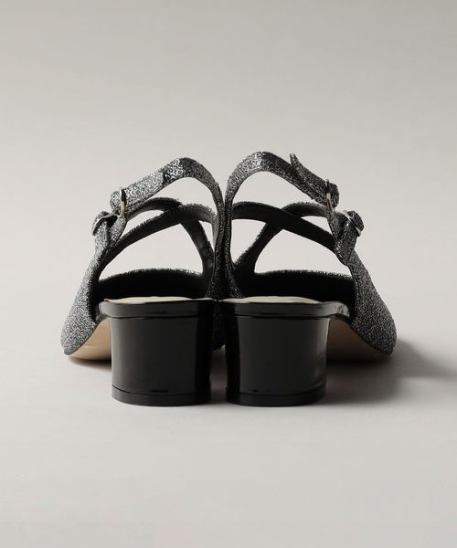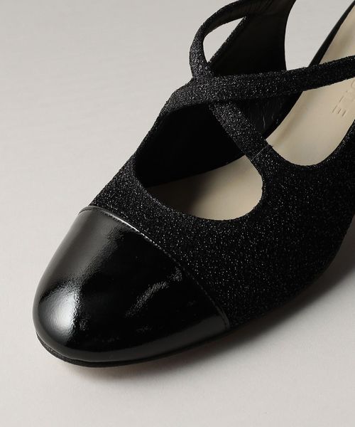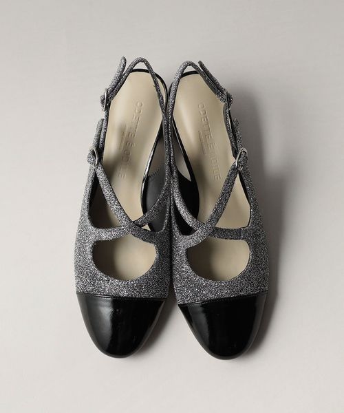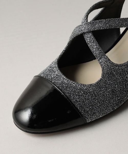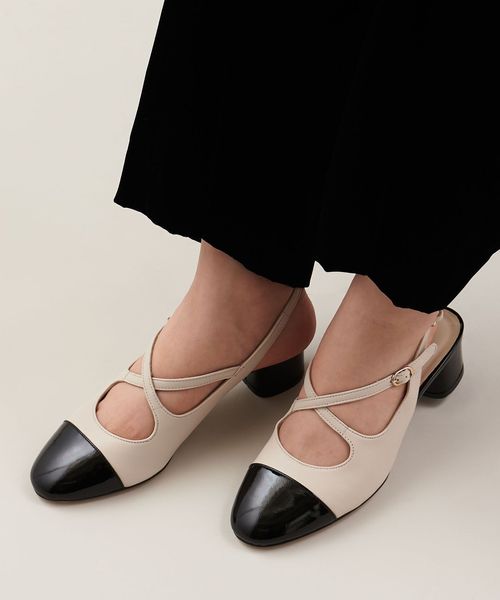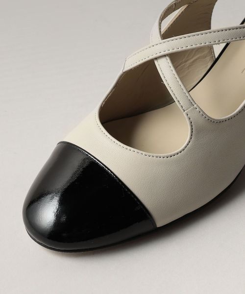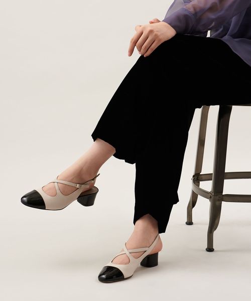 クラシカルなラウンドトゥに、アッパーのクロスしたストラップがデザイン性のあるパンプス。