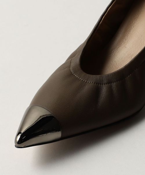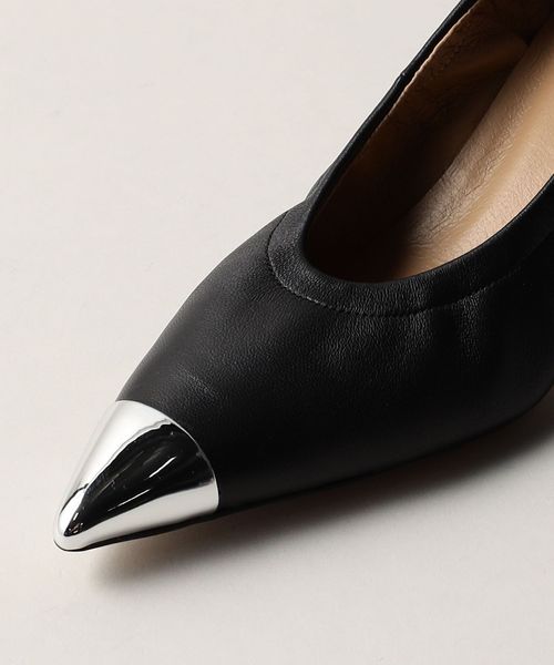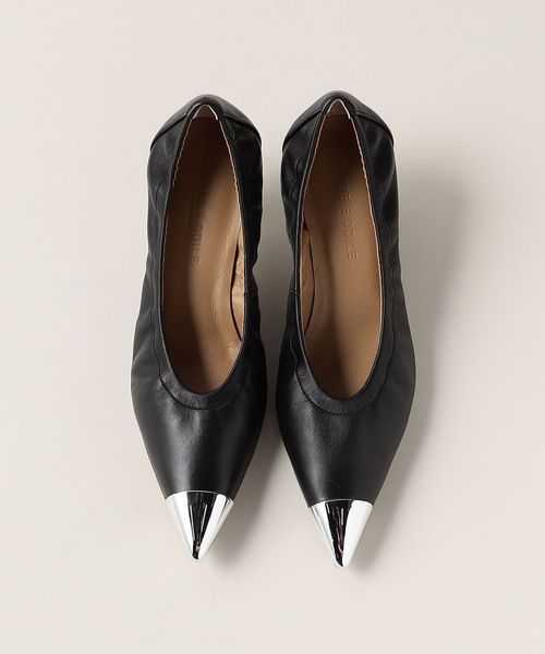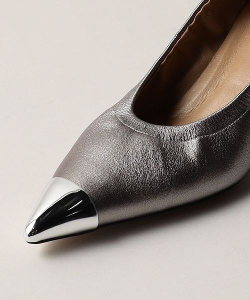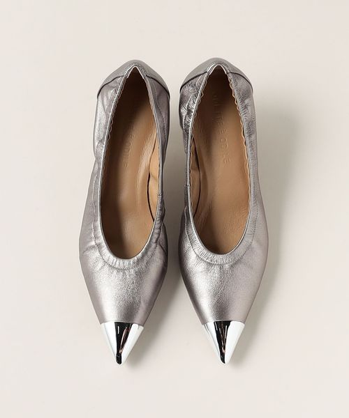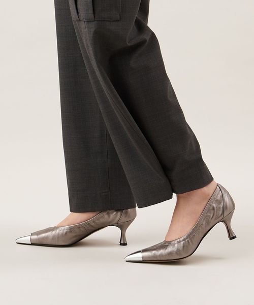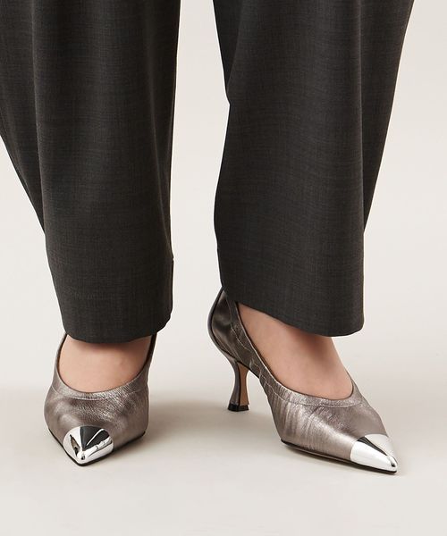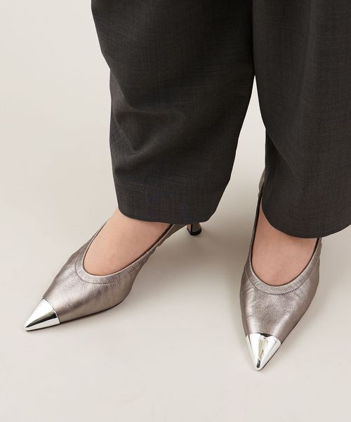 ポインテッドのトゥ先はメタリックカラーを組み合わせて引き締め、足元にさりげなくアクセントをつけつつ、モード感のある一足に仕上げました。