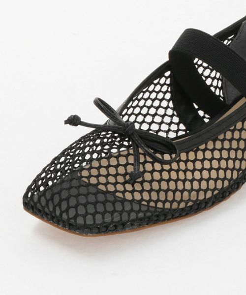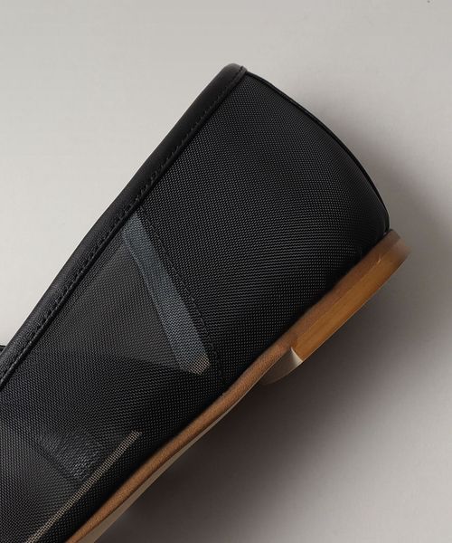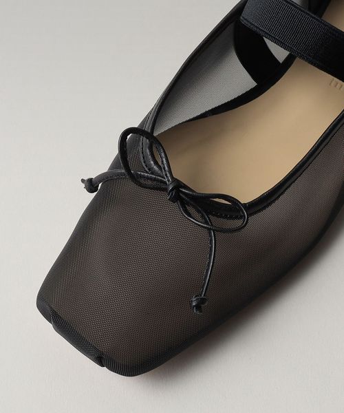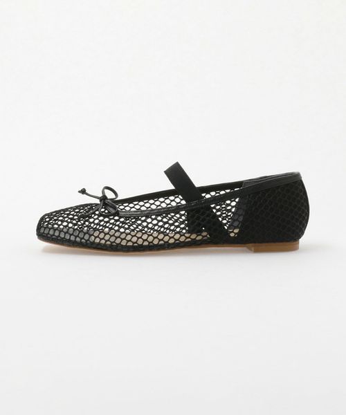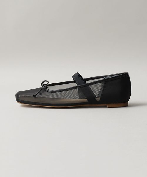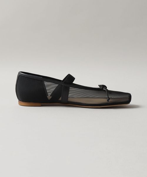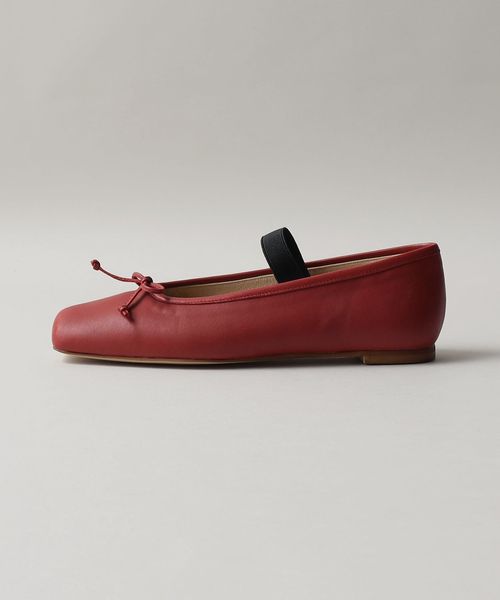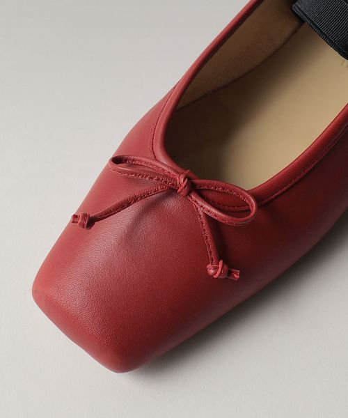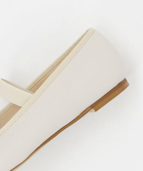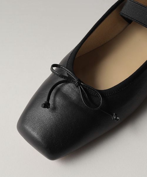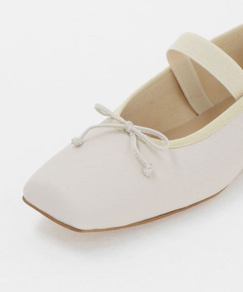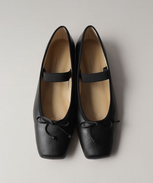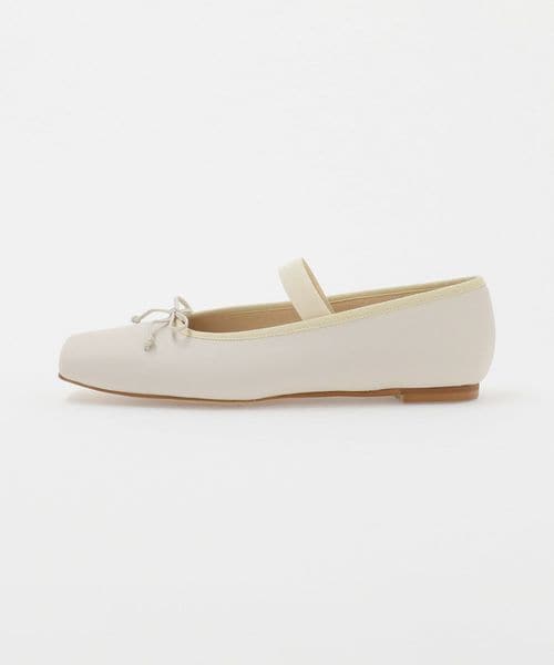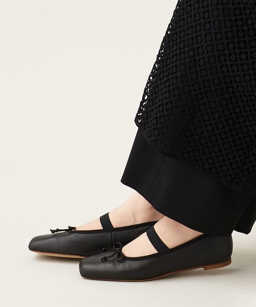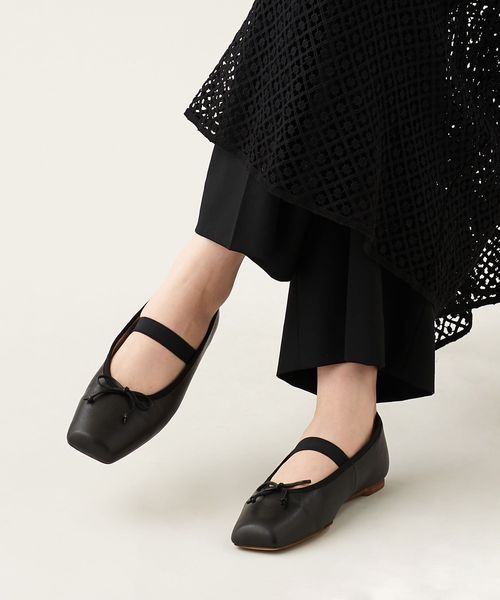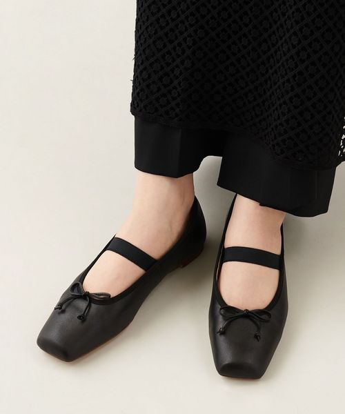 やや深めの履き口とスクエアのトゥ先が落ち着いた雰囲気を演出し、可愛くなりがちなバレエシューズをモードでトレンド感ある一足へと格上げ。