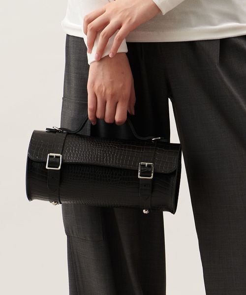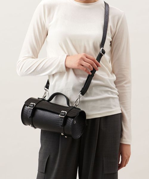 円筒形のデザインが目を引くバッグは普段のスタイルに合わせていただくとモードな印象をプラスしてくれます。
