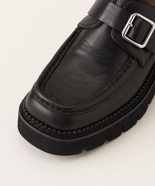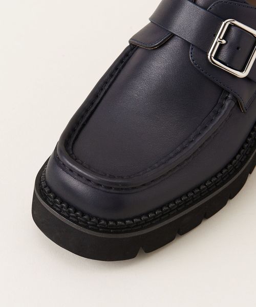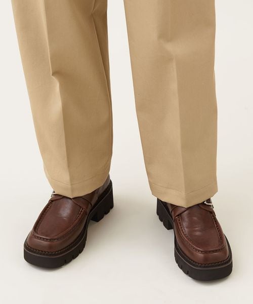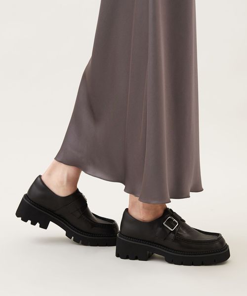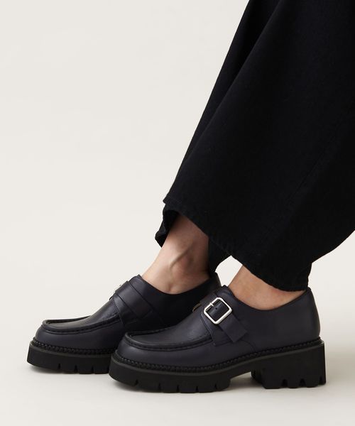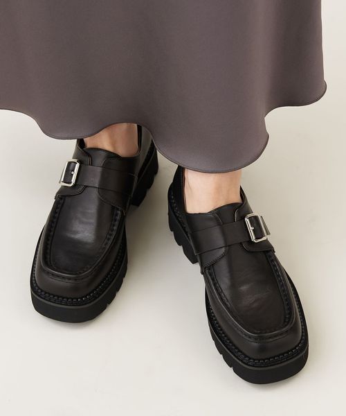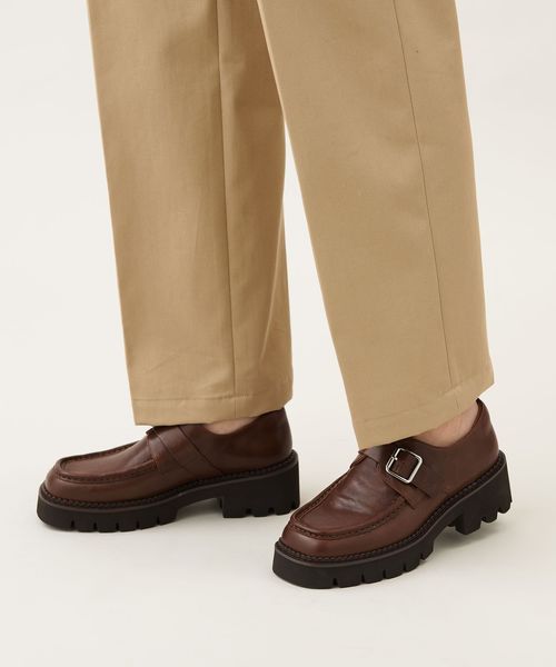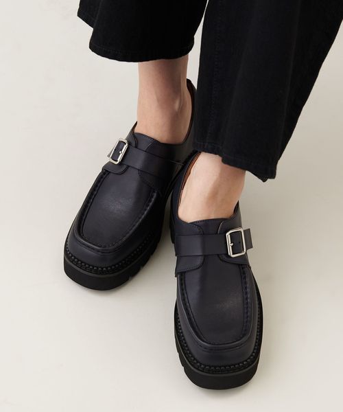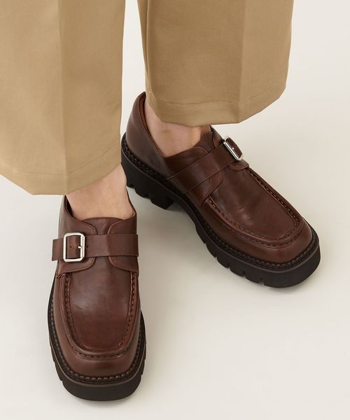 広めのスクエアトゥが足元にボリュームをプラスし、存在感を発揮。