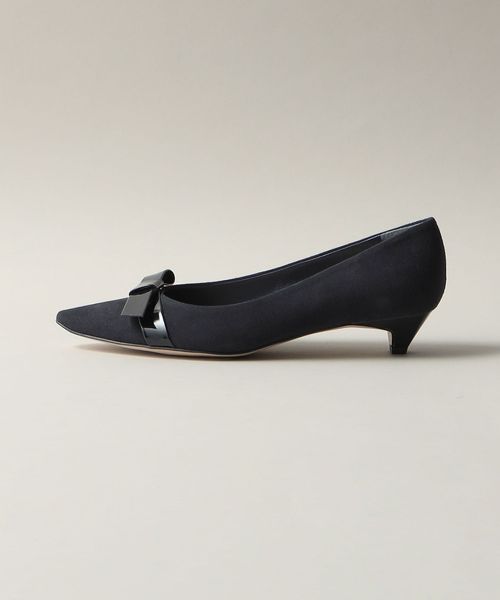 トゥ先をつまんだような少し上がった木型にやや浅めのカットライン、そこにリボンモチーフを乗せたレディーライクな一足。