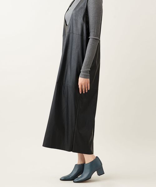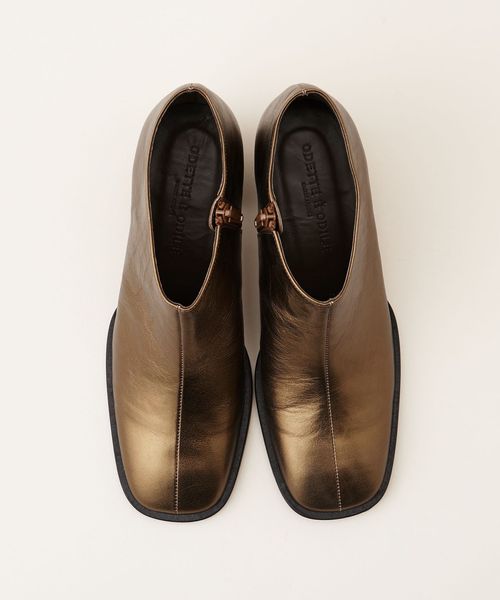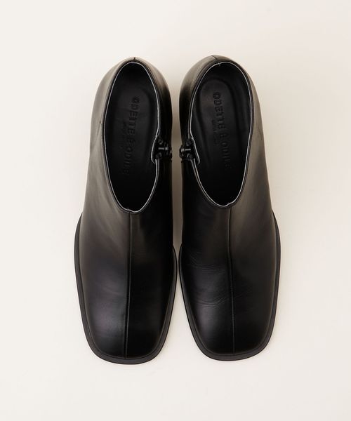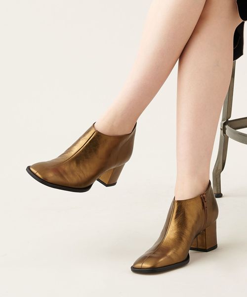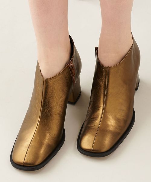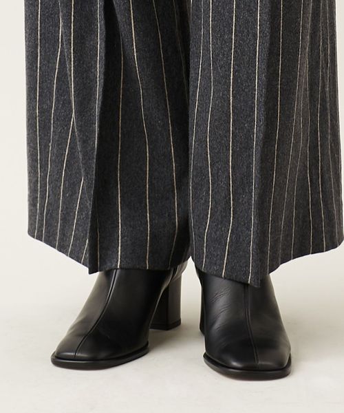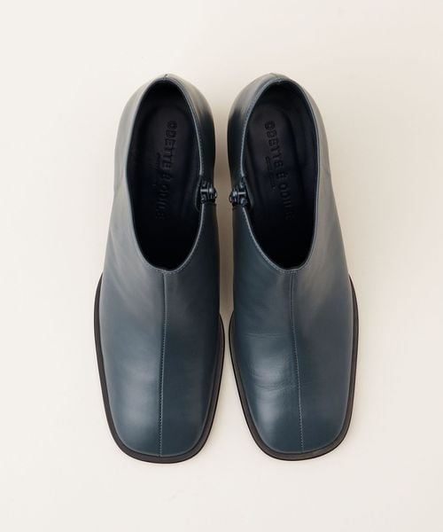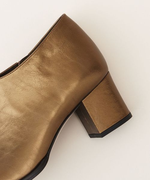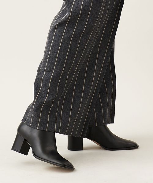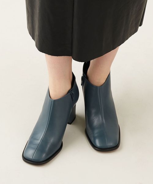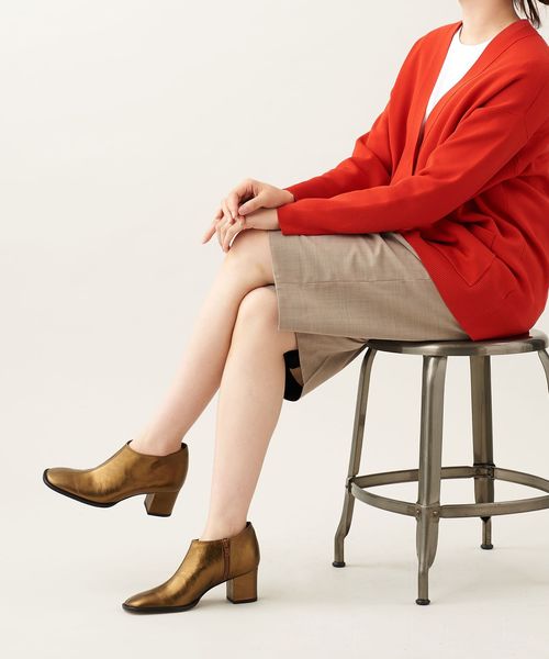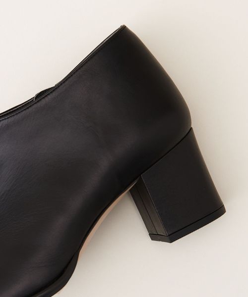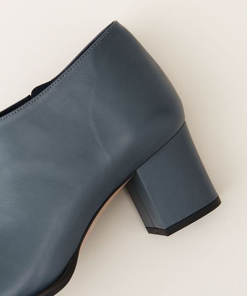トゥ先に幅を持たせた木型とストレートの太いヒールを組み合わせ、カジュアルな印象でボリューム感を出しています。
