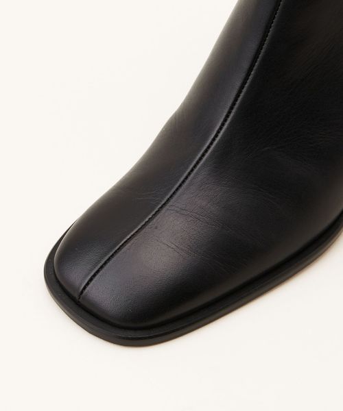長め丈が主流となっているなか、あえて短めの筒丈に仕上げることで独自のスタイルを提案する一足。