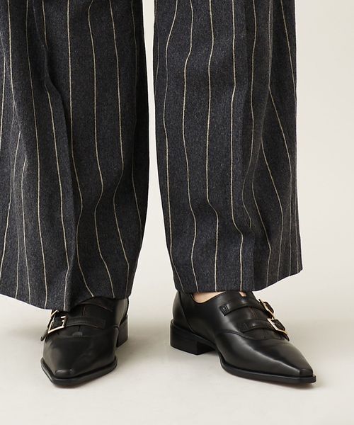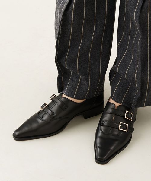ロングノーズと細めスクエアトゥのスタイリッシュな木型が足元をシャープに引き締めてくれ、押し縁が辛口な印象を演出。