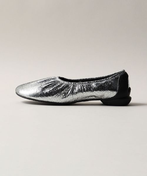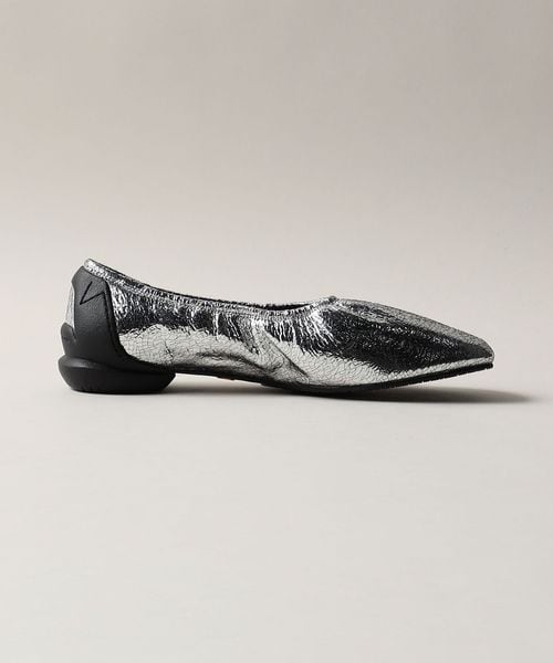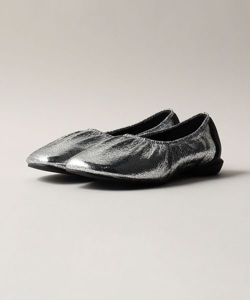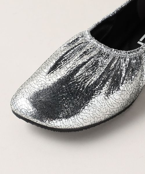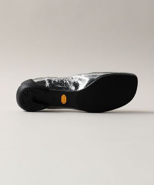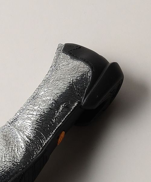 クラックシルバーが程よい光沢感でモードな印象をプラスしてくれる、甘くなりすぎない大人のための1足です。