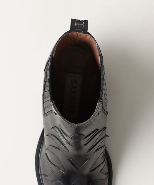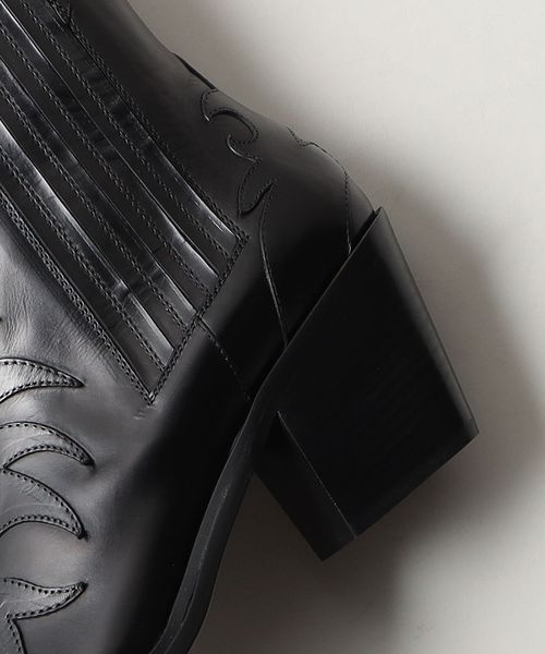 アイコニックなウェスタンディテールとシャープな木型が、モードやカジュアルな装いに映えるアイテム。