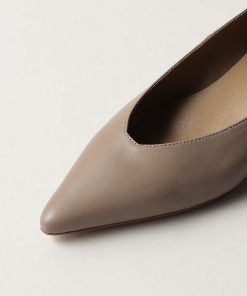 ロングノーズのトゥ先がシャープな印象のプレーンパンプス