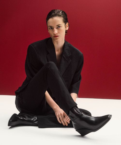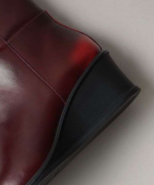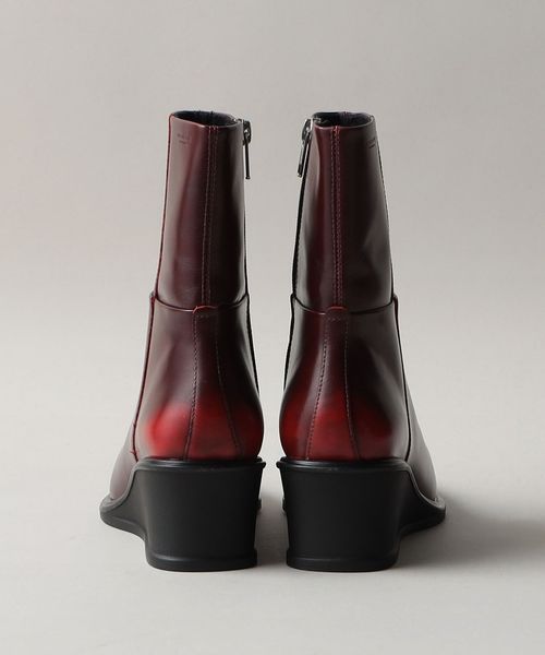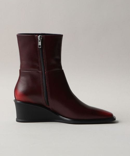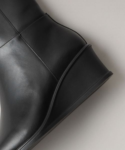 すっきりとしたウェッジヒールとノーズ長めのバランスが新鮮なショートブーツ