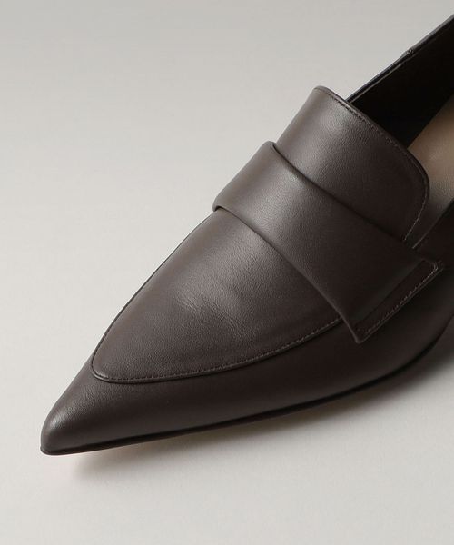 シャープなポインテッドトゥのローファーパンプス