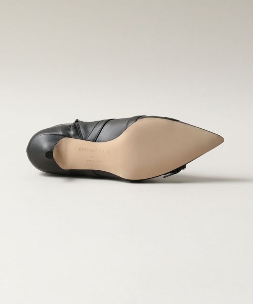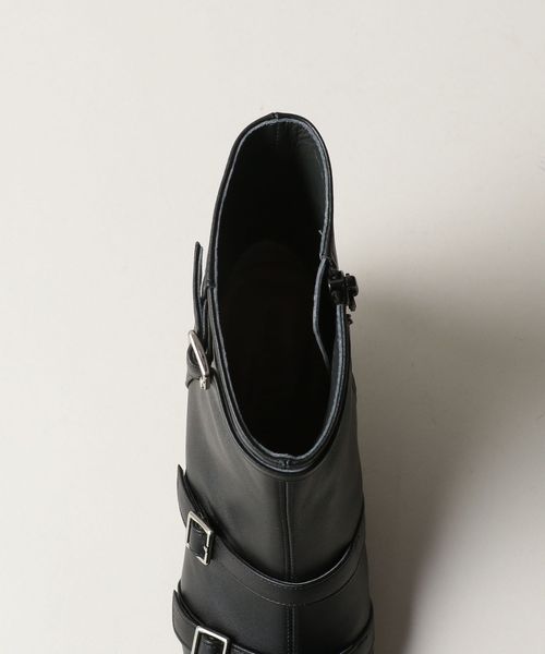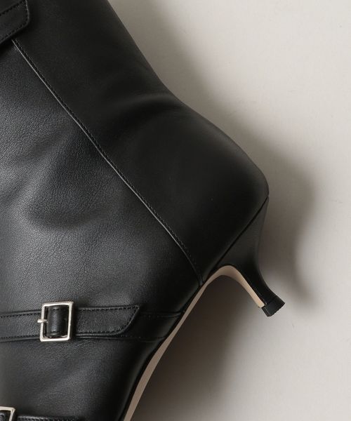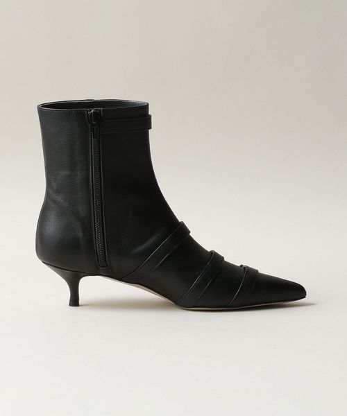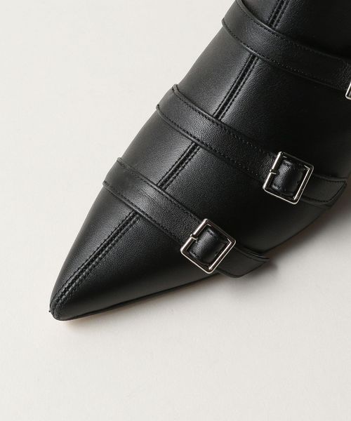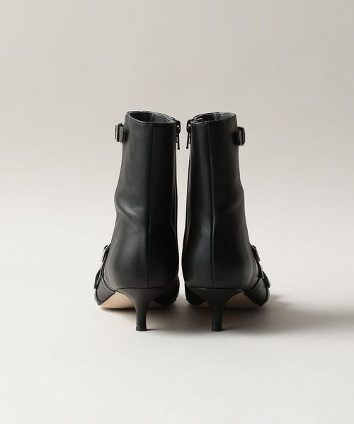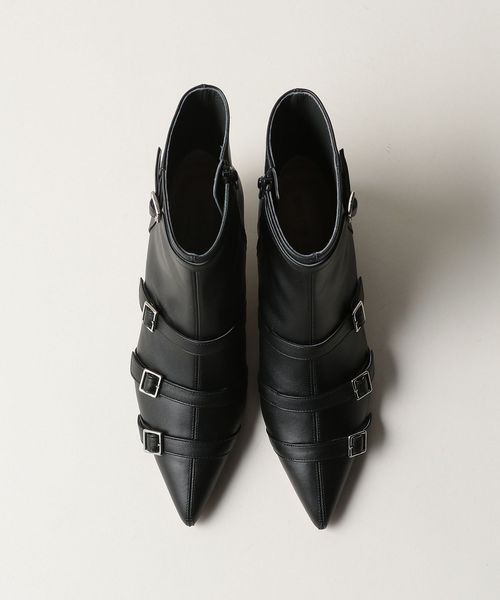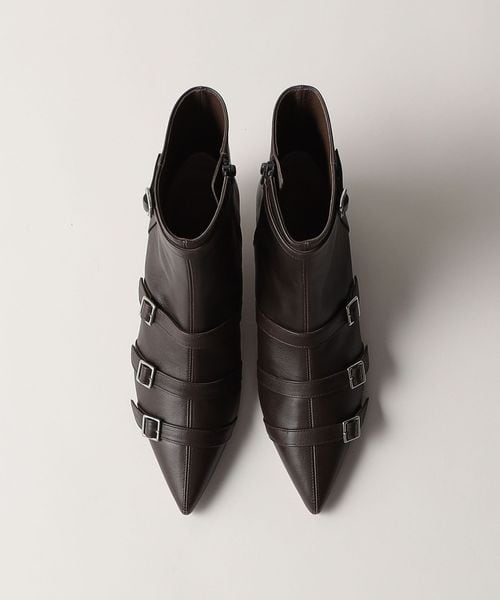 4本のベルトが印象的なポインテッドショートブーツ