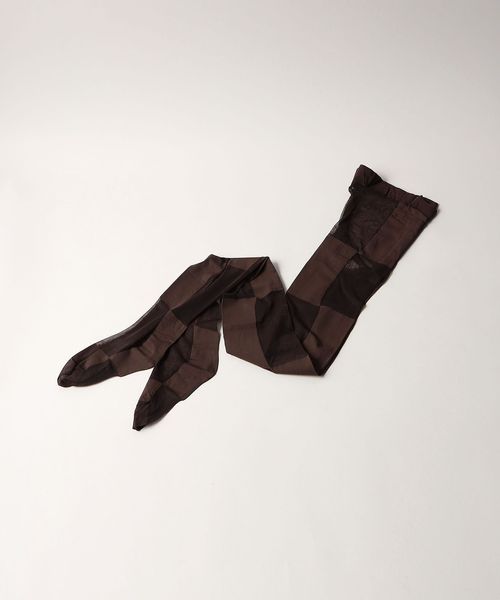 大きなチェック柄がコーディネートにアクセントをプラスしてくれるストッキング