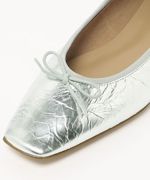 可愛い印象のバレエシューズも、すっきりしたスクエアトゥのシルエットで大人っぽい雰囲気を漂わせます。