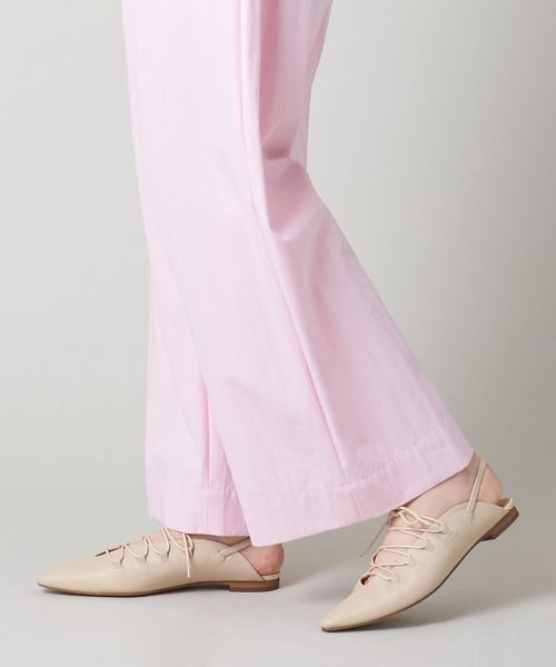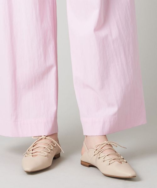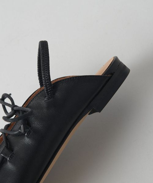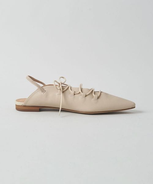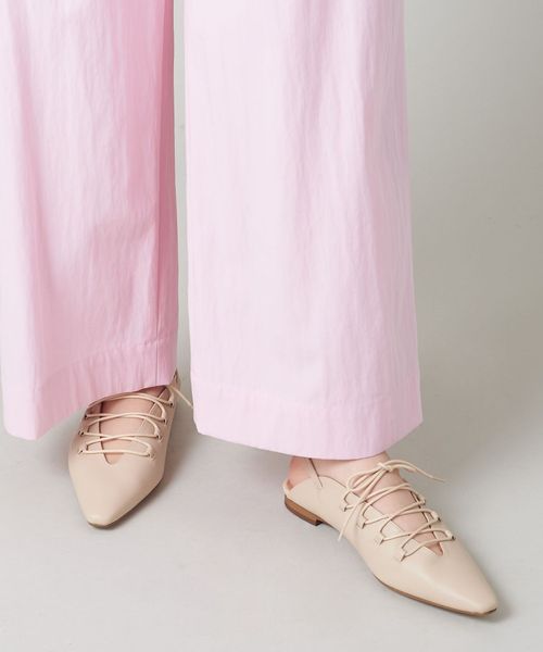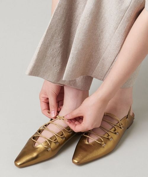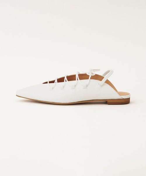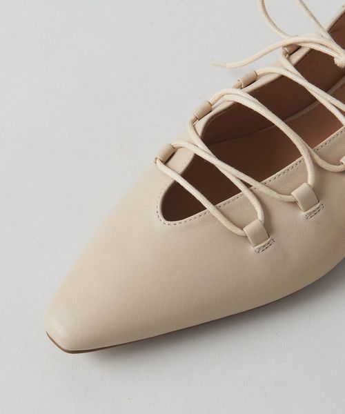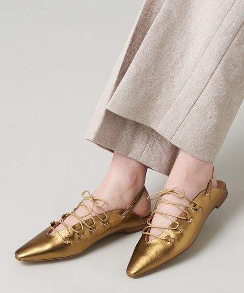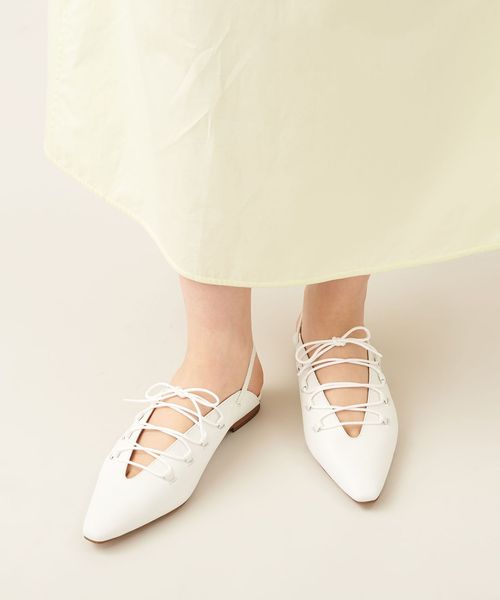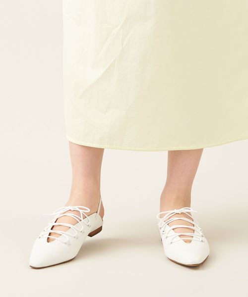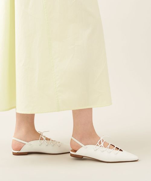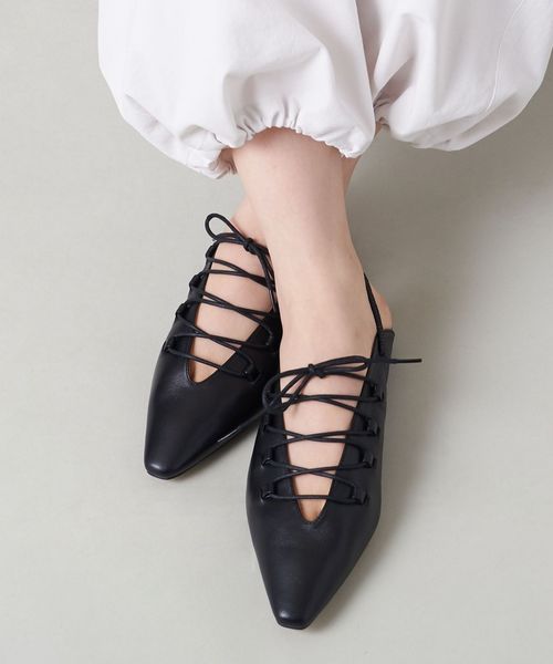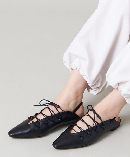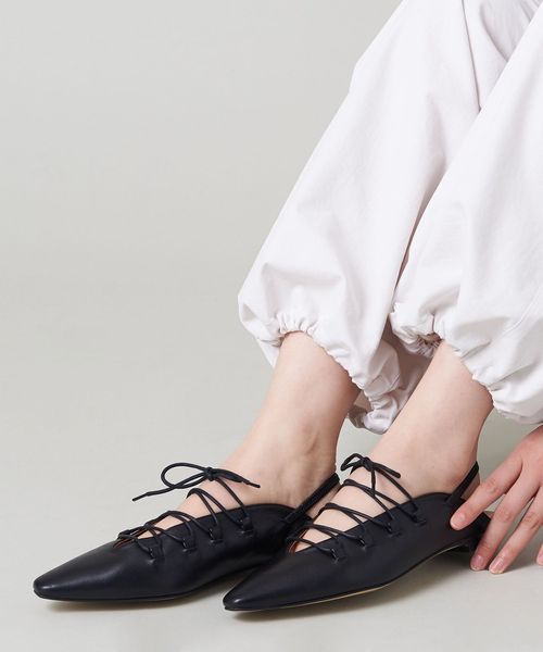 レースアップからのぞく肌見えとバックベルトの抜け感の組み合わせは、ありそうでなかった新鮮なバランスです。