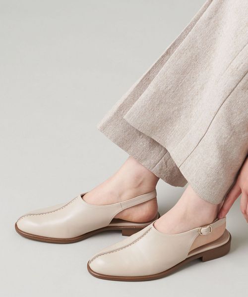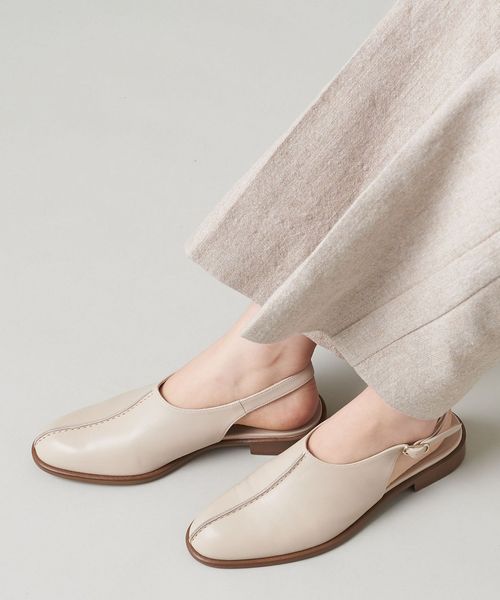 押し縁を付けた底周りでモードな印象のフラットシューズ。