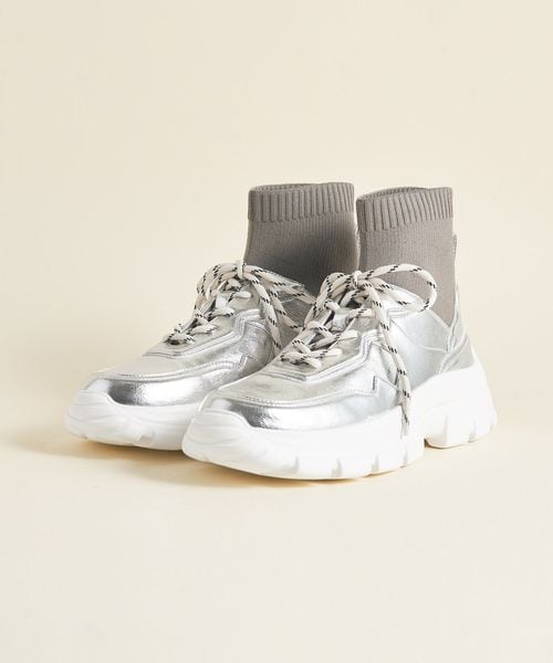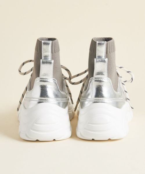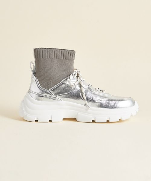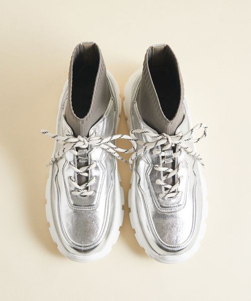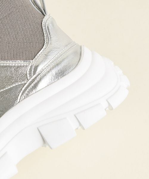 シルバーはスムース素材で統一し、足首のニット部分とカラーコンビが映えるようにしました。