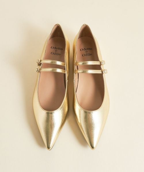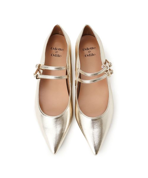 2本のストラップが上品なフラットシューズ