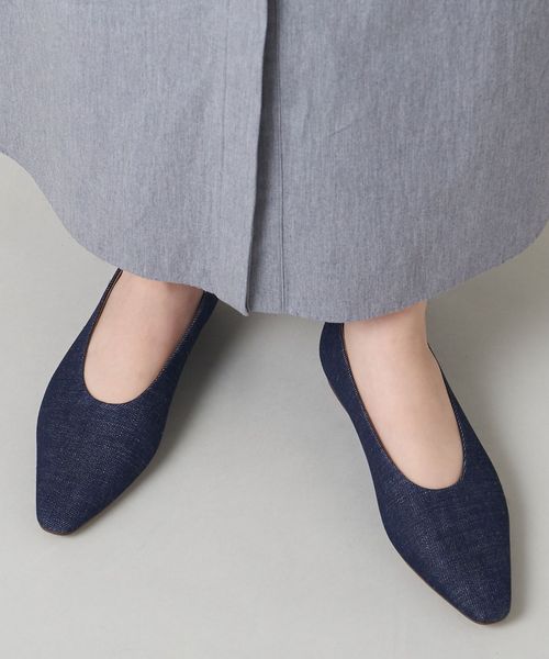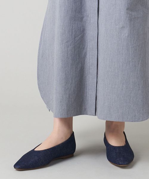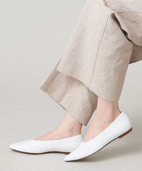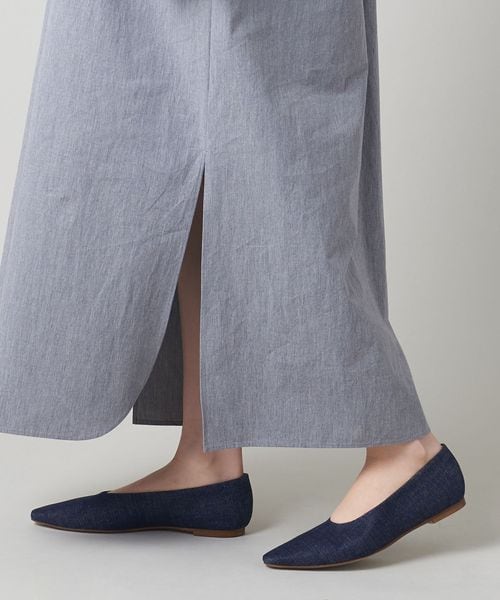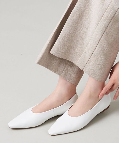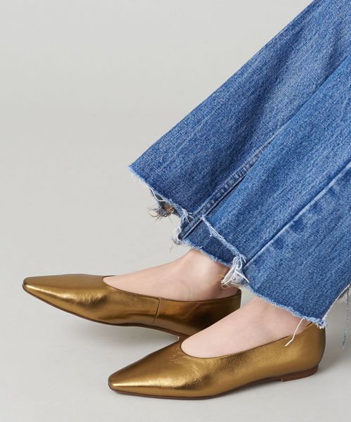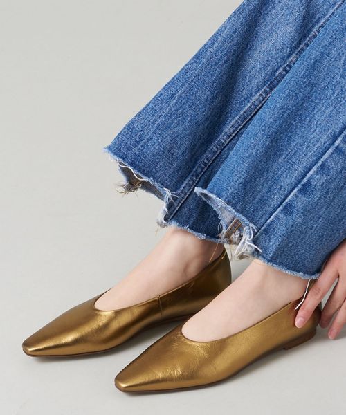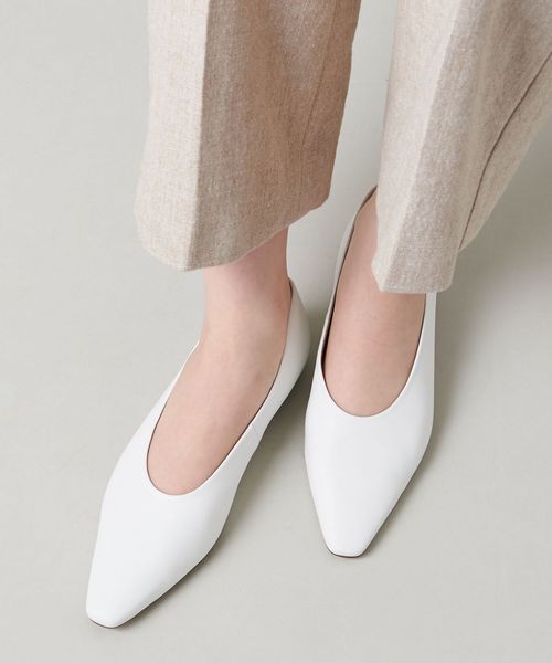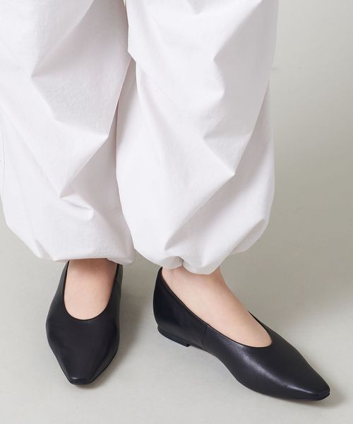 ノーズが長めのスクエアトゥで、モードな雰囲気を演出。
